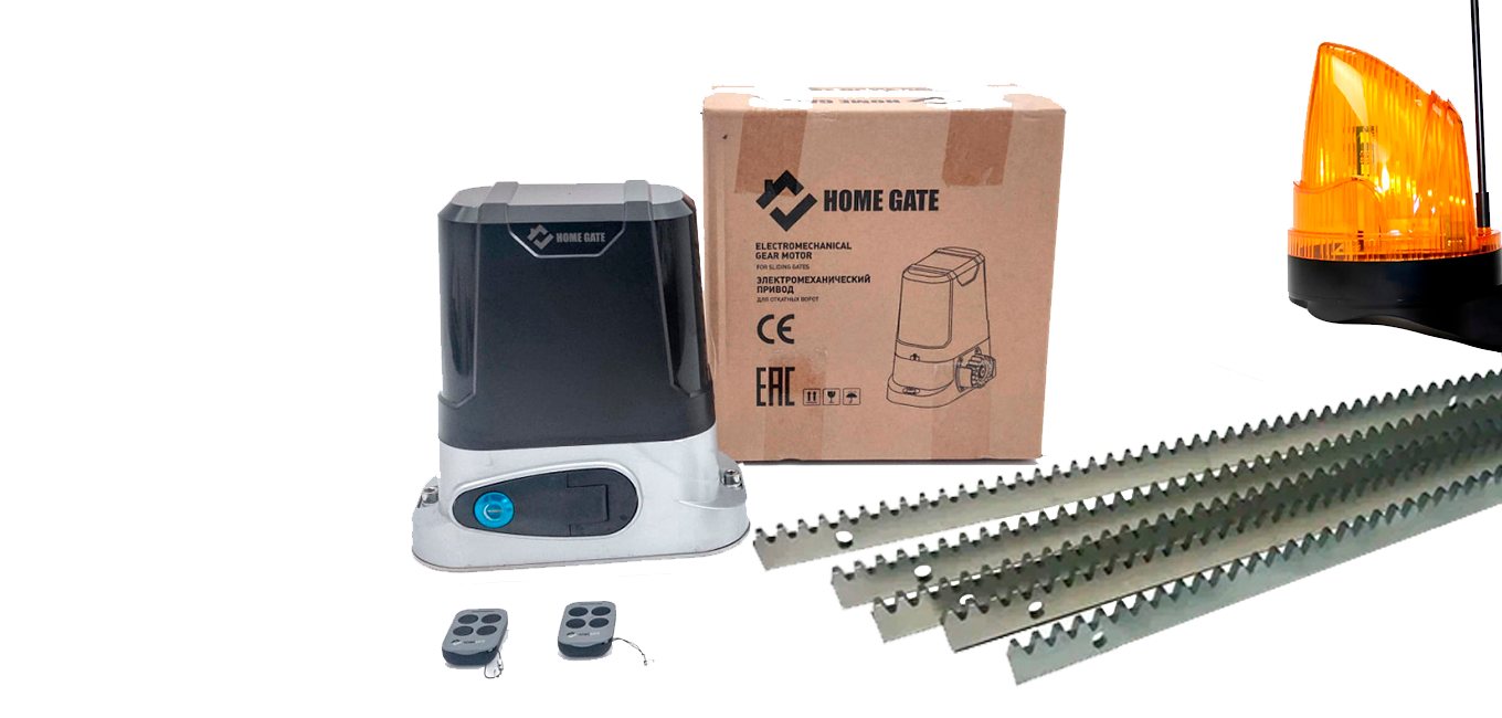 Комплект электропривода для откатных ворот HOME GATE LTM 600 + рейка 5 шт + фотоэлементы + лампа